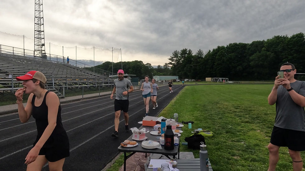 A handful of gooey, frosted donuts with the combination of a few laps around the track made for a unique way to spread awareness about an issue that hits close to home for many – abortion. In collaboration with the NH Reproductive Freedom Fund, Moyer and LeBlanc hosted an event that brings two different communities together – politics and running.