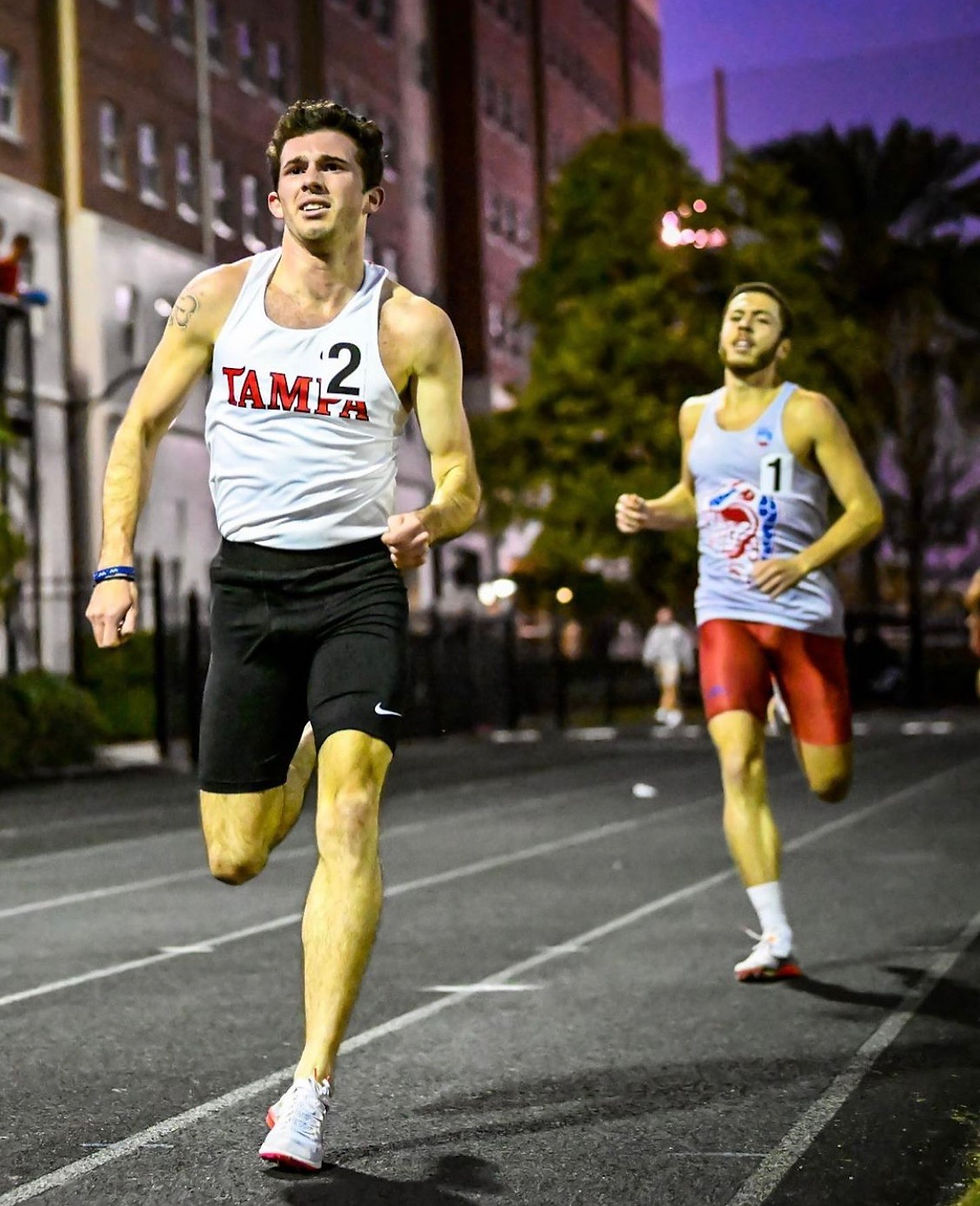 Two spots to Bracken’s right, wearing the bright red jersey of the University of Tampa and hip number 3, stood Shane Cohen. Cohen’s collegiate accolades were a bit different from his namesake. While Bracken had spent the past two years adjusting to track at the college level and earning his reputation, Cohen had spent the previous fall and winter on the Tampa Women’s Basketball practice squad, convinced he had run the final race of his career two months ago as a highschool senior.